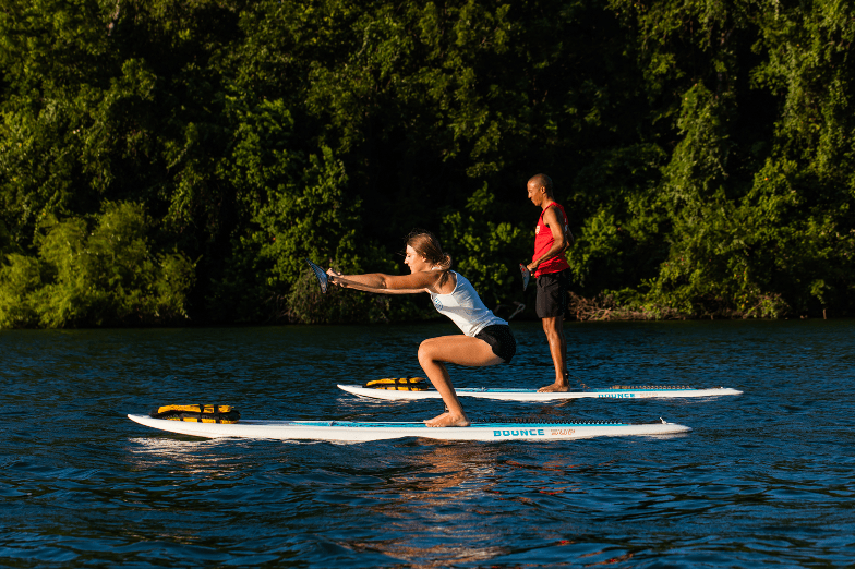 The board ‘s handle should be between your knees and your feet. Of course, it’s normal to make mistakes at first, … Lower the paddle down to the side, letting your hands move comfortably along the paddle. Hold the paddle above your head and form a ‘y’ shape with your arms. When turning right, you’ll need to position the paddle by the tail and.